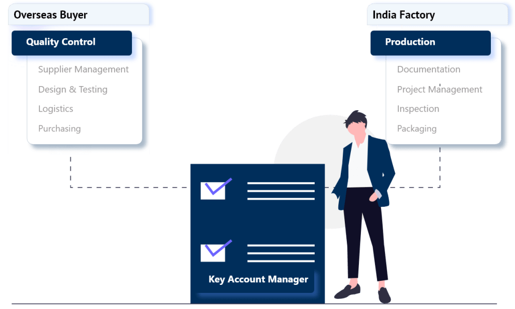 -acts as a single-window for all your colleagues in other departments (such as quality, testing, logistics, etc.). KAM saves your time of asking suppliers in India, wait for the reply & then passing information to the concerned internal department.
